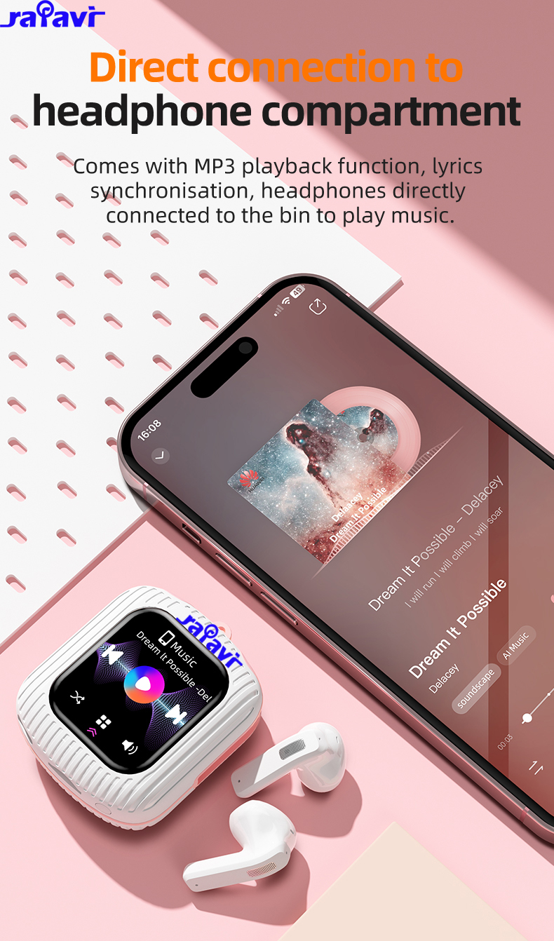 Comes with MP3 playback function, lyrics synchronisation, headphones directly connected to the bin to play music.