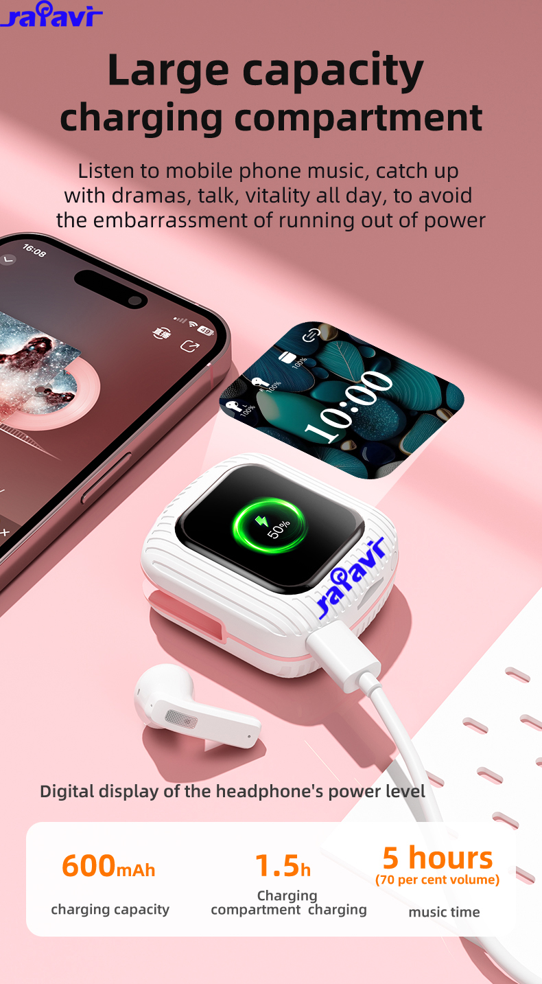 10.Large capacity charging compartment:Listen to mobile phone music, catch up with dramas,talk,vitality all day,to avoid the embarrassment of running out of power.